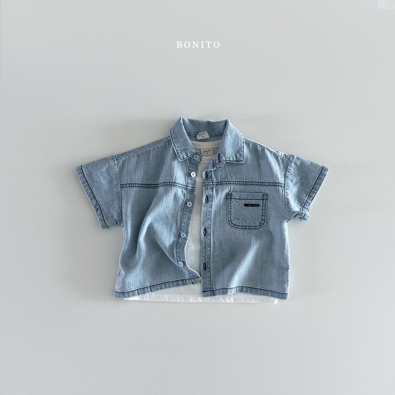 胸元のロゴがカッコイイデニムシャツです。