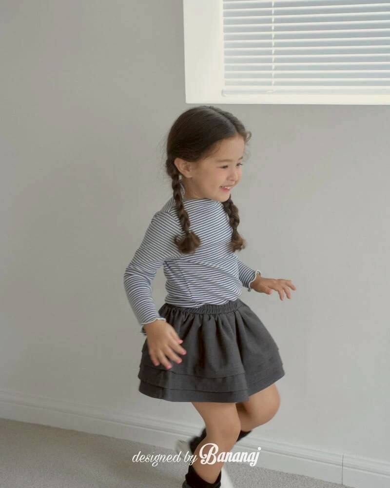 首元のフリルが可愛らしいボーダーのロングTシャツ♡