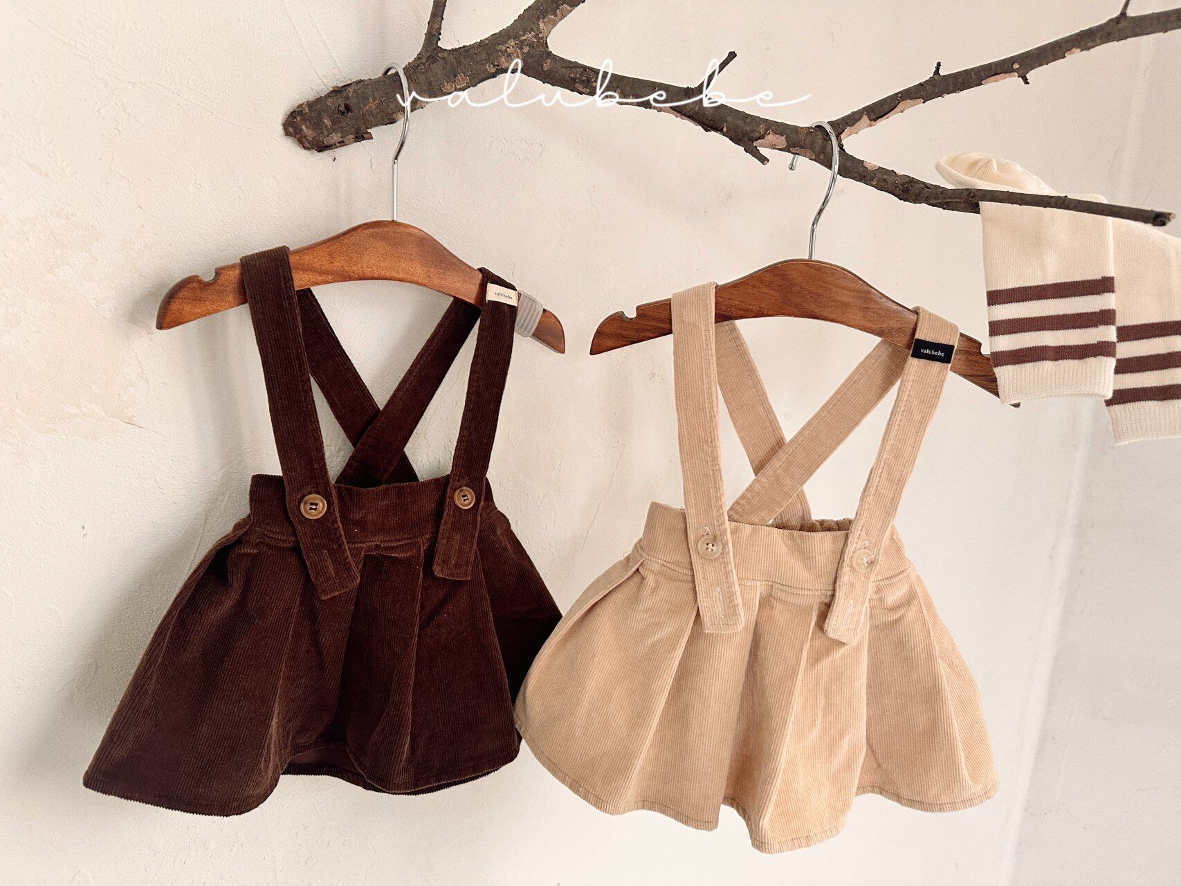 ふんわり可愛いサスペンダー付きプリーツスカート