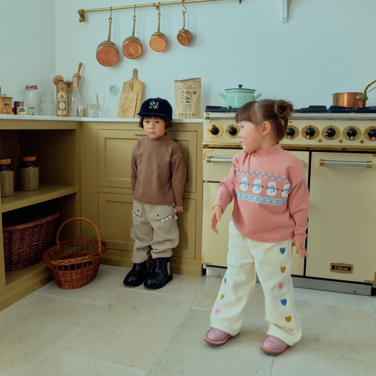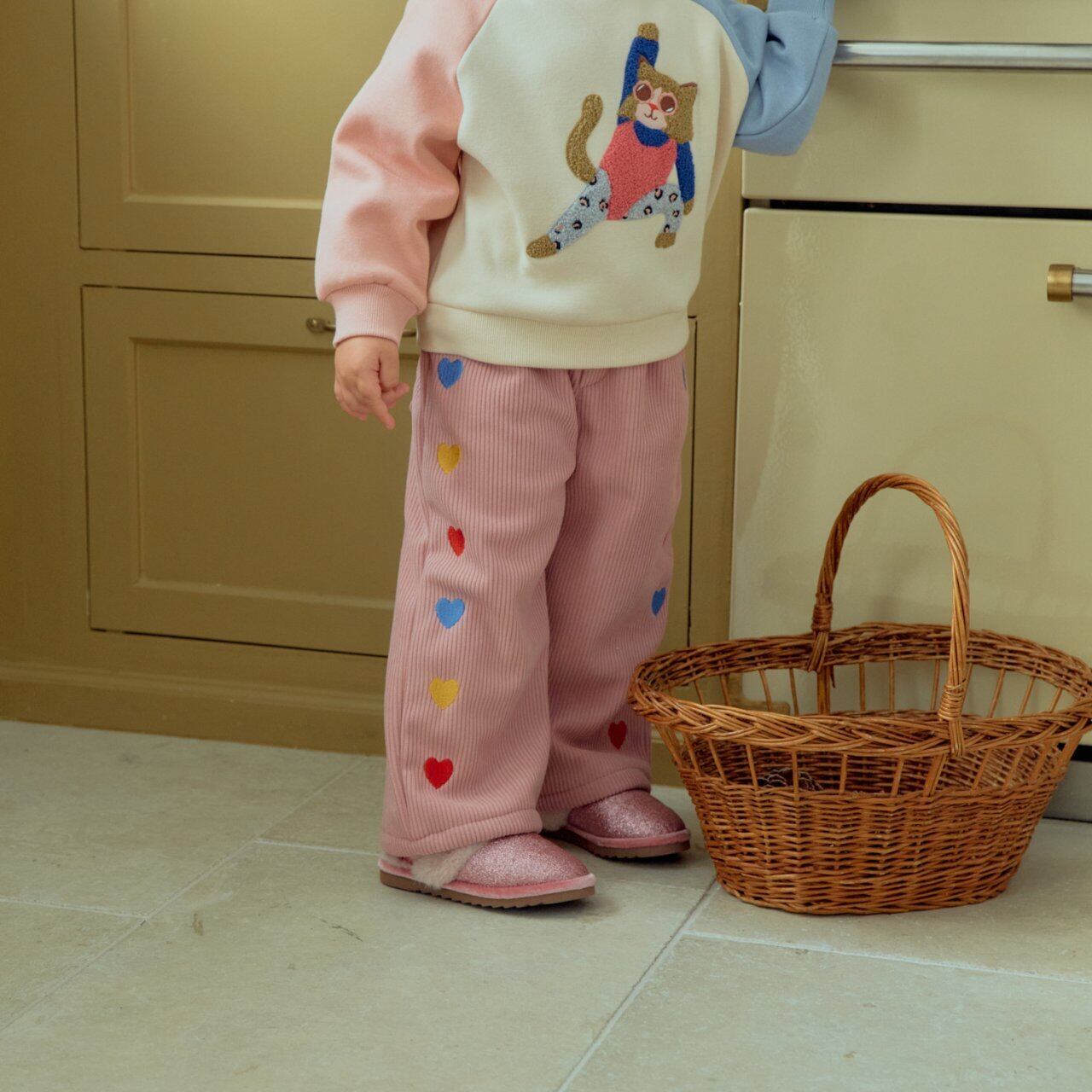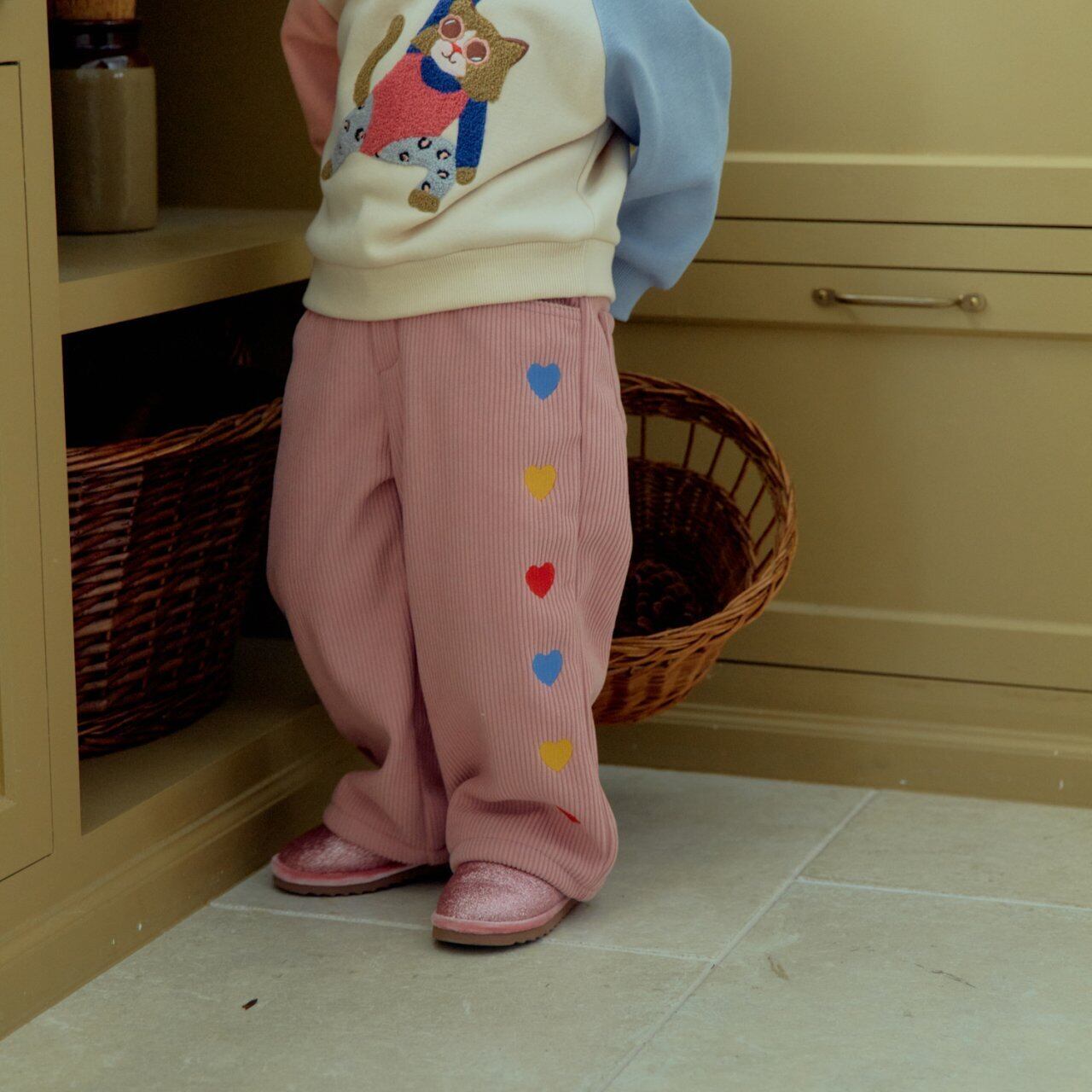 【予約商品】【1stblue】Heart-embroidered corduroy pants