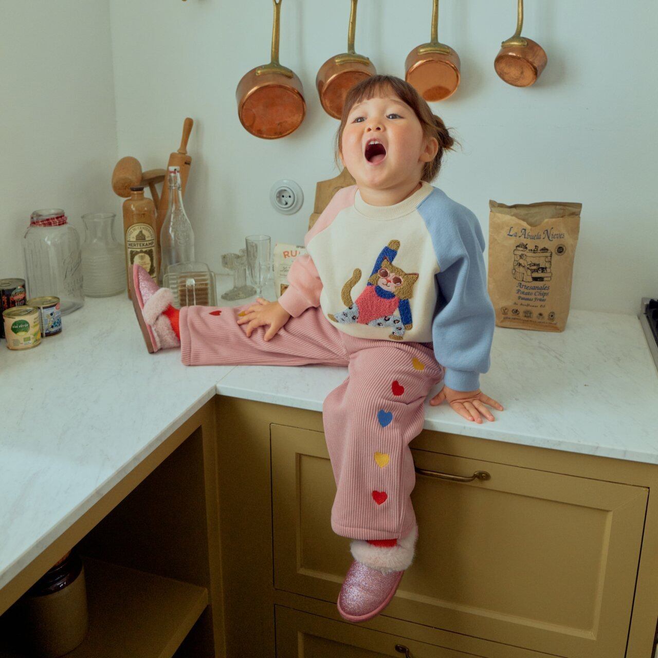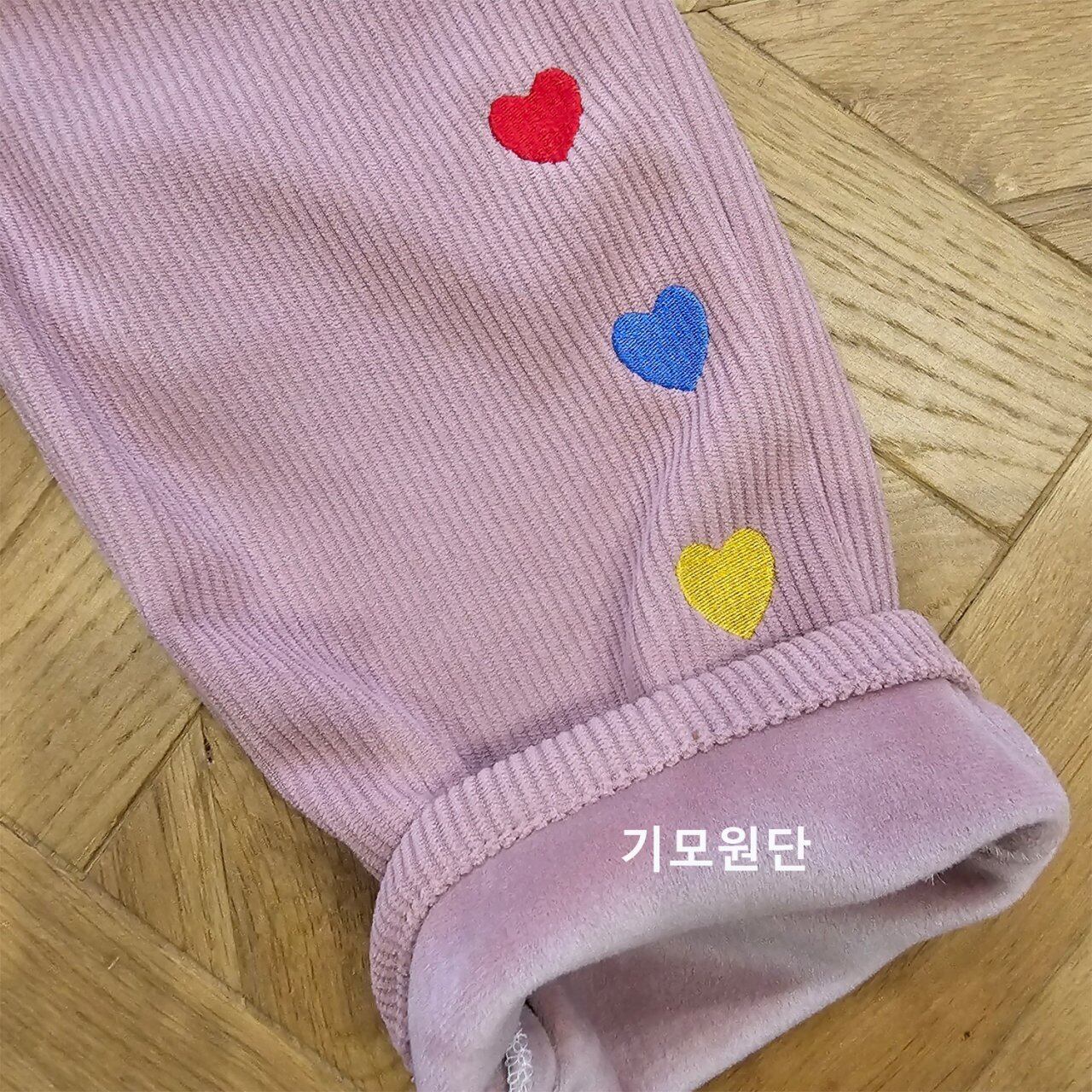 Heart-embroidered corduroy pants